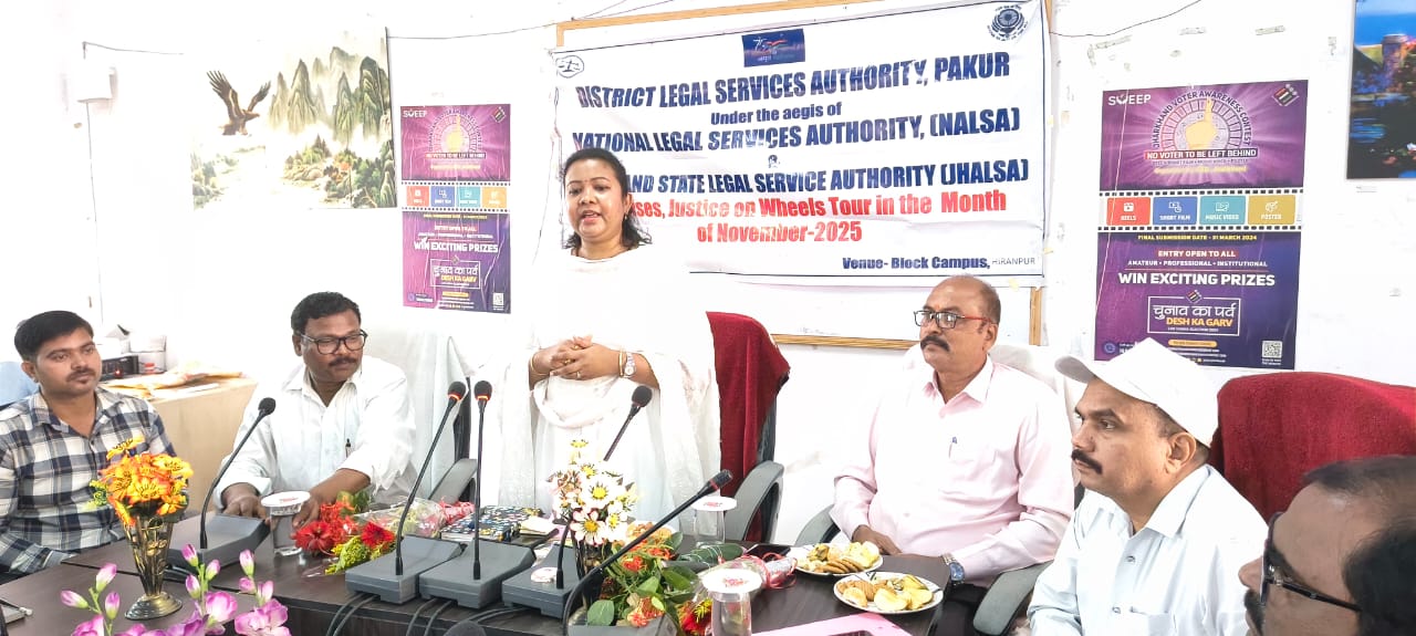पाकुड़। झालसा रांची के निर्देशानुसार जिला विधिक सेवा प्राधिकार, पाकुड़ के तत्वावधान में हिरणपुर प्रखंड सभागार में एक विशेष चलंत वाहन सह लोक अदालत कार्यक्रम (Justice on Wheels) का आयोजन किया गया।