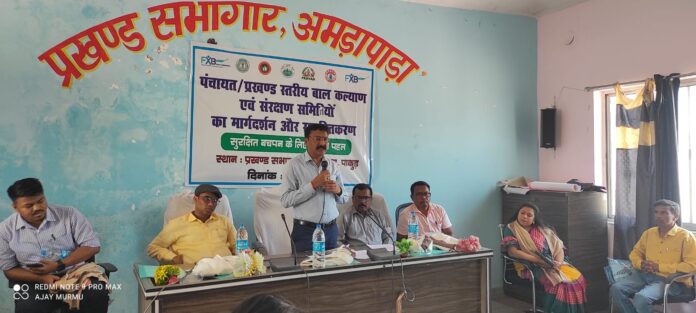 рдЕрдордбрд╝рд╛рдкрд╛рдбрд╝рд╛ (рдкрд╛рдХреБрдбрд╝)ред рдкреНрд░рдЦрдВрдб рд╕рднрд╛рдЧрд╛рд░ рдЕрдордбрд╝рд╛рдкрд╛рдбрд╝рд╛ рдореЗрдВ рдЭрд╛рд░рдЦрдВрдб рд╡рд┐рдХрд╛рд╕ рдкрд░рд┐рд╖рдж рдПрд╡рдВ рдПрдл0рдПрдХреНрд╕0рдмреА рдЗрдВрдбрд┐рдпрд╛ рд╕реБрд░рдХреНрд╖рд╛ рдХреЗ рд╕рдВрдпреБрдХреНрдд рддрддреНрд╡рд╛рд╡рдзрд╛рди рдореЗрдВ тАЬрд╕реБрд░рдХреНрд╖рд┐рдд рдмрдЪрдкрди рдХреЗ рд▓рд┐рдП рджрд╛рдорд┐рди рдкрд╣рд▓тАЭ рдкрд░рд┐рдпреЛрдЬрдирд╛ рдХреЗ рдЕрдВрддрд░реНрдЧрдд рдЧреНрд░рд╛рдо рдПрд╡рдВ рдкреНрд░рдЦрдВрдб рд╕реНрддрд░реАрдп рдмрд╛рд▓ рд╕рдВрд░рдХреНрд╖рдг рд╕рдорд┐рддрд┐ рдХреЗ рд╕рджрд╕реНрдпреЛрдВ рдХрд╛ рдПрдХ рд╡реНрдпрд╛рдкрдХ рдЙрдиреНрдореБрдЦреАрдХрд░рдг рдХрд╛рд░реНрдпрдХреНрд░рдо рдЖрдпреЛрдЬрд┐рдд рдХрд┐рдпрд╛ рдЧрдпрд╛ред рдЗрд╕ рдХрд╛рд░реНрдпрдХреНрд░рдо рдХрд╛ рдЙрджреНрджреЗрд╢реНрдп рдмрд╛рд▓ рд╕рдВрд░рдХреНрд╖рдг рдХреЗ рдкреНрд░рддрд┐ рдЬрд╛рдЧрд░реВрдХрддрд╛ рдмрдврд╝рд╛рдирд╛ рдФрд░ рд╕реНрдерд╛рдиреАрдп рд╕реНрддрд░ рдкрд░ рд╕рдорд┐рддрд┐рдпреЛрдВ рдХреЛ рд╕рдХреНрд░рд┐рдп рдПрд╡рдВ рд╕рд╢рдХреНрдд рдмрдирд╛рдирд╛ рдерд╛ред