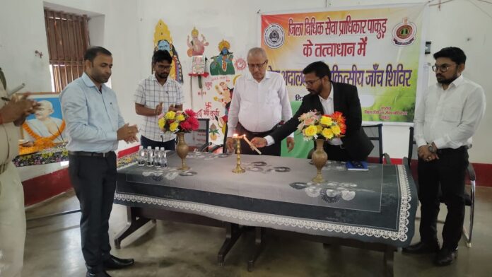 पाकुड़ – गांधी जयंती के अवसर पर मंडलकारा पाकुड़ में जेल अदालत सह मेडिकल कैंप का आयोजन किया गया। यह कार्यक्रम झालसा रांची के निर्देशानुसार जिला विधिक सेवा प्राधिकार पाकुड़ के तत्वाधान में संपन्न हुआ। कार्यक्रम की अध्यक्षता प्रधान जिला एवं सत्र न्यायाधीश सह अध्यक्ष जिला विधिक सेवा प्राधिकार पाकुड़, शेष नाथ सिंह ने की।