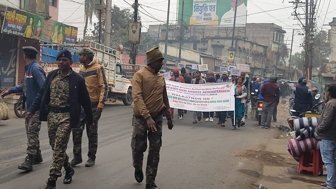 पाकुड़। “जीवन को हां कहो, नशे को ना कहो” के प्रेरक नारे के साथ पाकुड़ में नशामुक्त भारत अभियान को मजबूती देने के उद्देश्य से एक विशाल जागरूकता रैली एवं वॉकथॉन का आयोजन किया गया। यह कार्यक्रम झारखंड राज्य विधिक सेवा प्राधिकार (झालसा), रांची के निर्देशानुसार तथा जिला विधिक सेवा प्राधिकार, पाकुड़ के तत्वावधान में संपन्न हुआ।